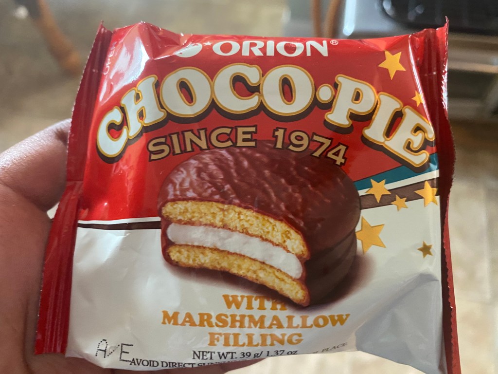 Choco Pie by Orion: Just by looking at the packaging, it’s very similar to a Moon Pie (what they’re called here in America). To be honest, when I first bit into the Choco Pie, it tasted more on the bland side. I did get more flavor as I ate it, but it was the chocolate that was doing the heavy lifting. I really don’t get as much of an overall kick from it as I do the Moon Pie. The Moon Pie gives me more of the overall package to be honest. This Choco Pie, however, is more on the chocolate side than anything else. A bit too much for me. 3/5
