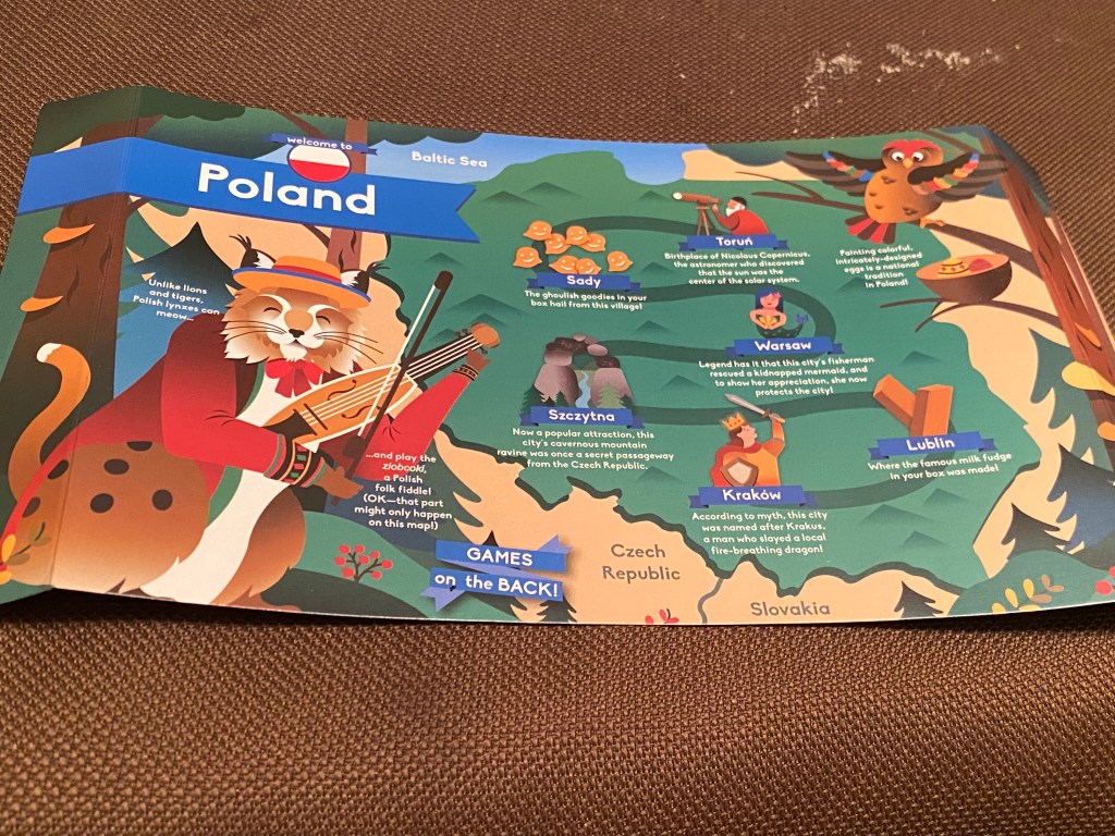 First Impressions: Seeing it in mail, the box was pretty small. I was excited, but I wondered how much could really be in there. I did see the sticker on the box (picture shown above), which seemed to get a hint on what January’s country would be. I thought it was just for decoration, but then I noticed that it was a hint, and I wondered what country it would be. I was thinking that it could be a country like England, Scotland, Wales, possibly Ireland. I even thought that Japan could be in there (a long shot, but yes. Japan does have castles.) However, when I opened the box, it was Poland. (Spoiler: Had I stayed with the other company, that was going to be the next box.) I loved seeing the snacks and I loved the fact that there was an information book filled with facts, alongside a card. Seeing the box on the whole, I thought it was already more appealing that the Treats box. You can see how the booklet and card look in the photos below. Though after that, it’s time to read my thoughts on the Polish treats.