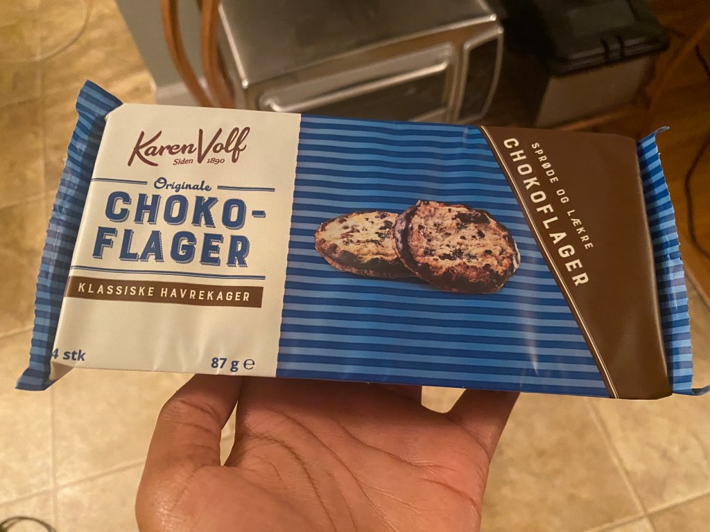 Choko-Flager (Danish): The texture reminds me of the sand cookies from the French box. The look is reminiscent of a tragically made cookie, but honestly, it’s quite good. Definitely accepted by my taste buds, considering the previous snack was so horrible. 4/5