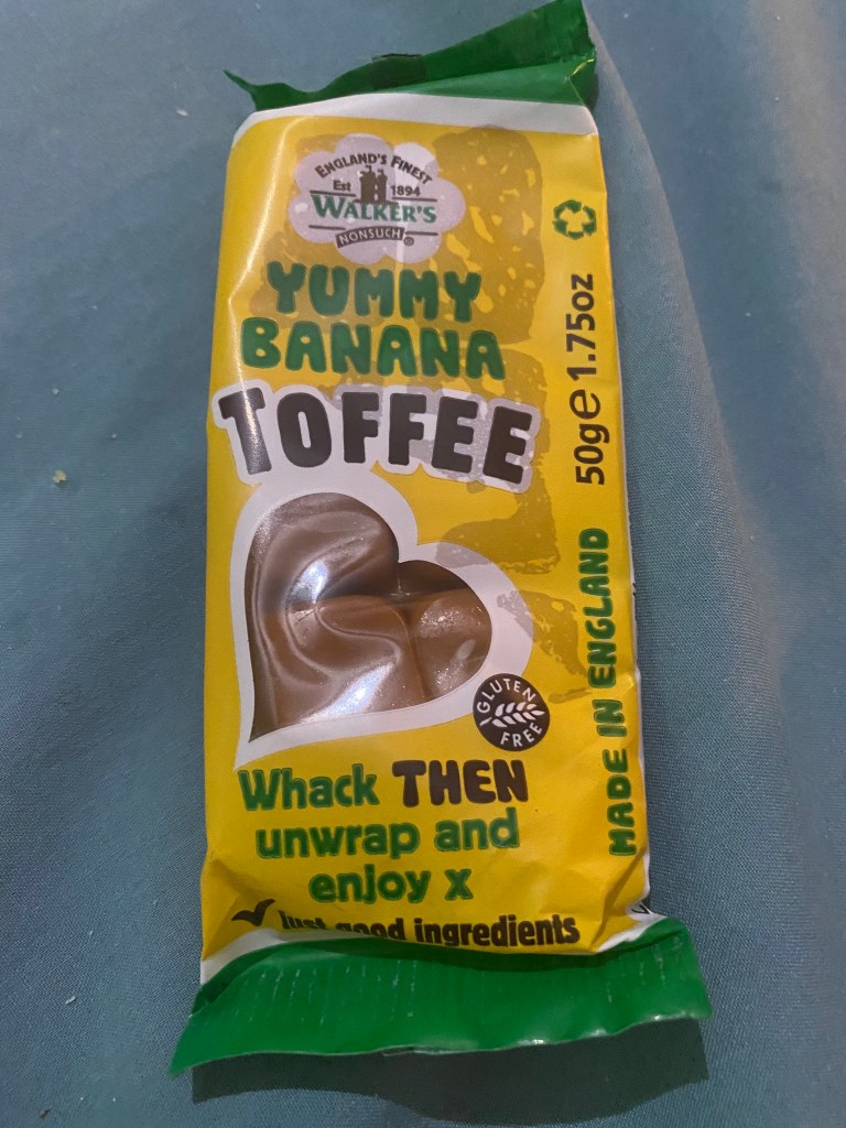 Yummy Banana Toffee: The banana flavor is present here. I like it enough. This is different from the Toffee Flapjack in that this is truly sticky toffee. Speaking of sticky, it certainly sticks to my teeth. I couldn’t eat more of this. Sucking on it doesn’t make the experience any better, and pulling a piece away from the others is really hard. Would I care for it if it was less sticky? Possibly. But I think I’ll have to pass on this “yum”. 2.5/5