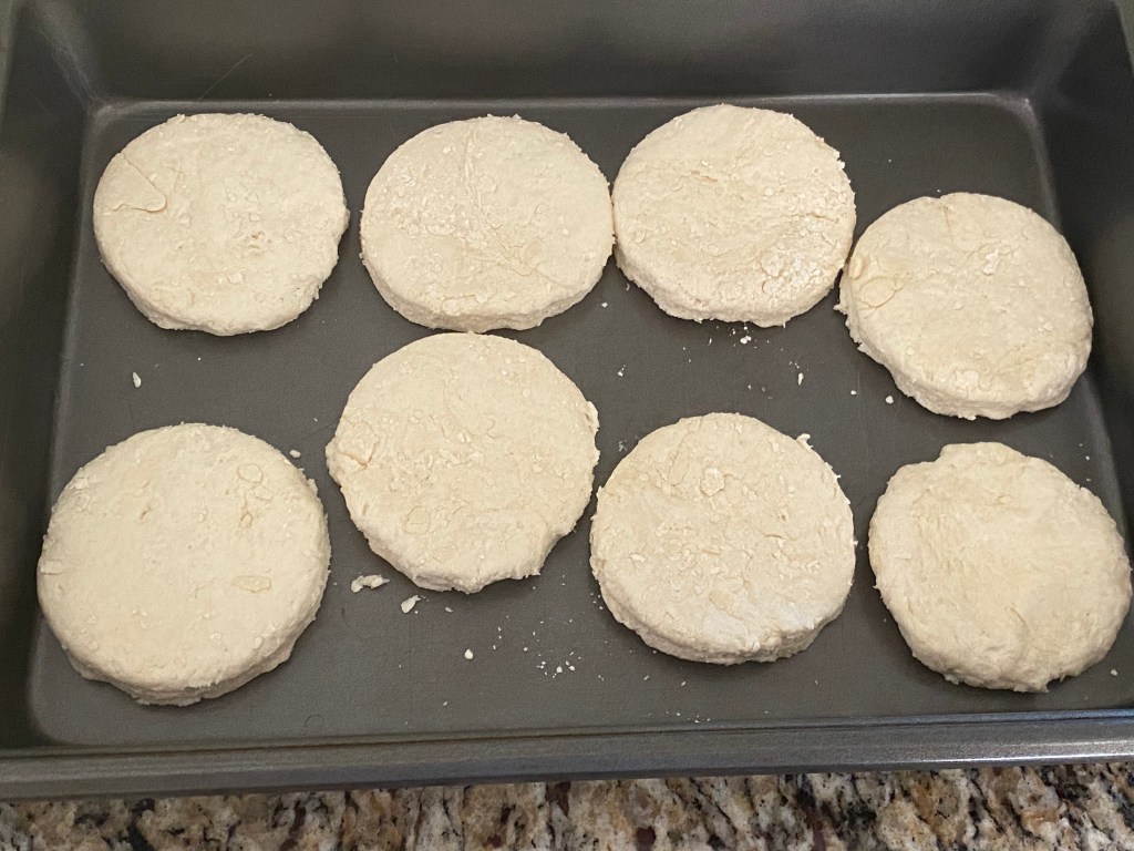 External Note: My mother stated that the biscuit recipe truly doesn’t matter, because nearly all of them are the same. One of her notes is to use good quality shortening like Crisco, because the brand of shortening you use will make a difference in the outcome. Another one is that a buttermilk biscuit recipe will come out really good, so be sure to use one that involves buttermilk. She’s made biscuits so much that she doesn’t even look at a recipe anymore. However, here’s a recipe that my mother has used to help get you started: https://www.bettycrocker.com/recipes/angel-biscuits/153e3d3e-9fb0-4593-bba8-12111dbaf6b8