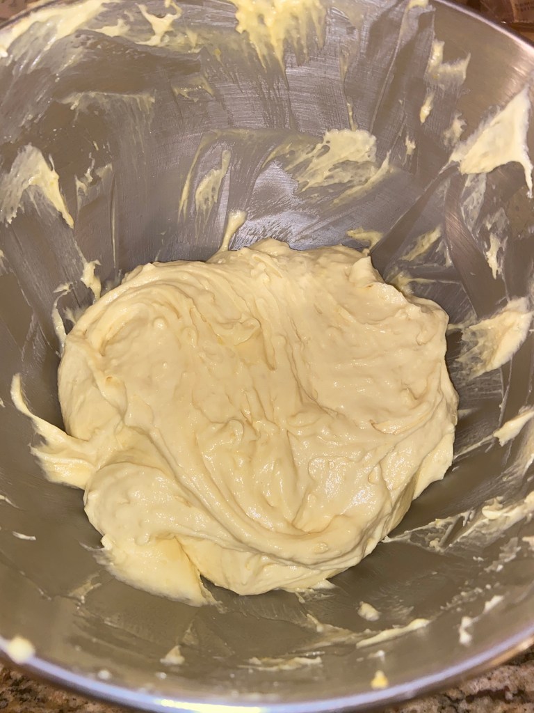Afterwards, I added the cake mix and lemon zest. The only reason I used yellow cake mix was because lemon cake mix wasn’t available. I manually stirred the batter again before completing the mixing stage with the KitchenAid mixer.