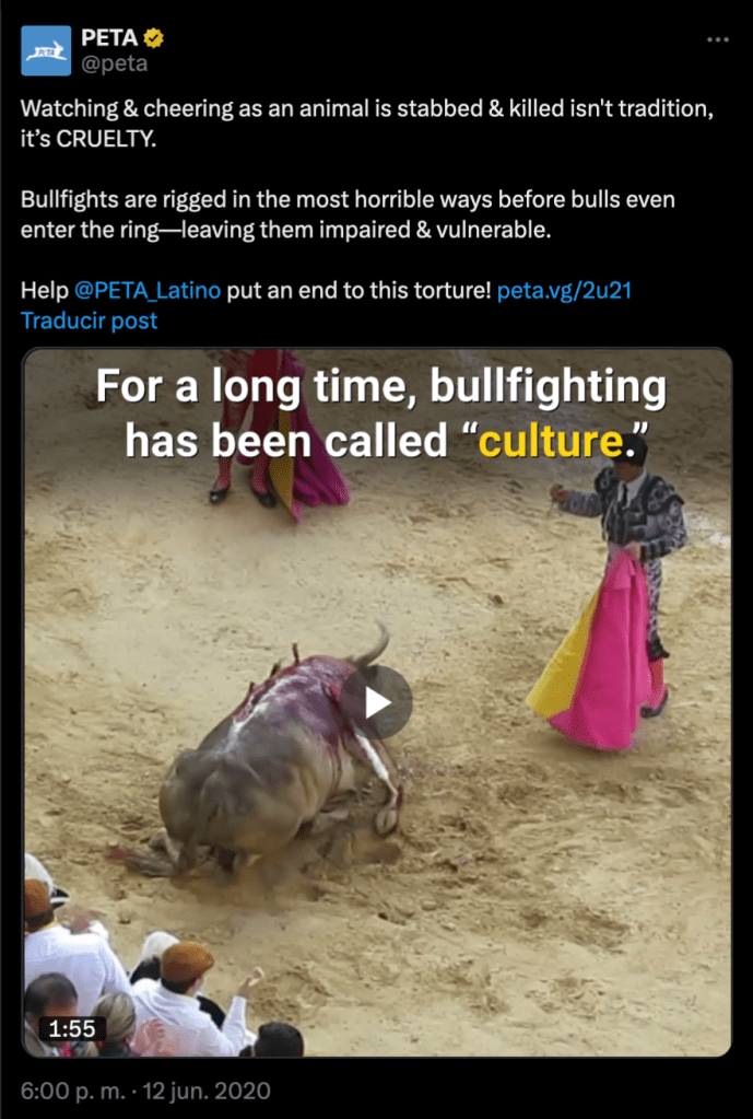 Y’all, I got some stuff to say about this subject. I’ve known for a while that PETA is a very hypocritical organization. They always flap their gums about not killing animals while doing anything but saving their lives. I remember seeing a tweet a while back from PETA condemning bullfighting in Spain and immediately rolling my eyes. Read it below.