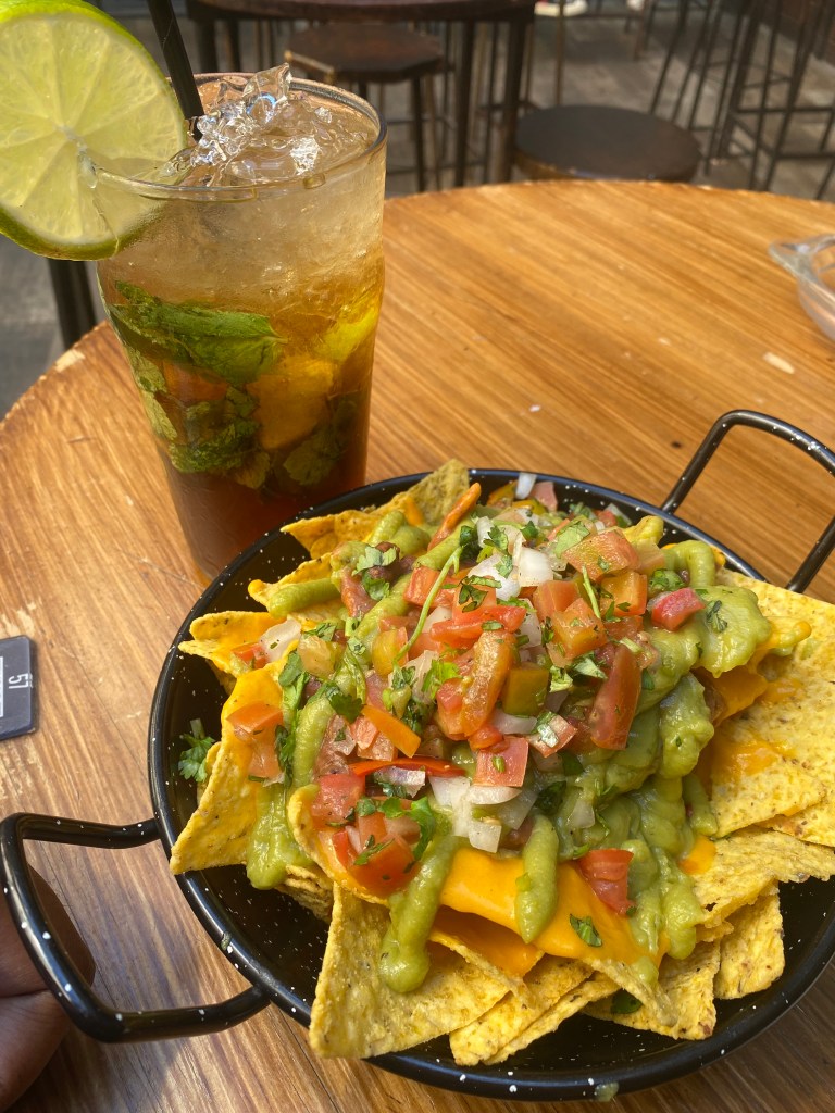 The second time I went I ordered a serving of nachos, a slice of Oreo cheesecake, shrimp baos, and a virgin mojito. This was on the day I went to a Cardamomo Flamenco show, so it was my pre-show meal. DROOL WARNING ⚠️