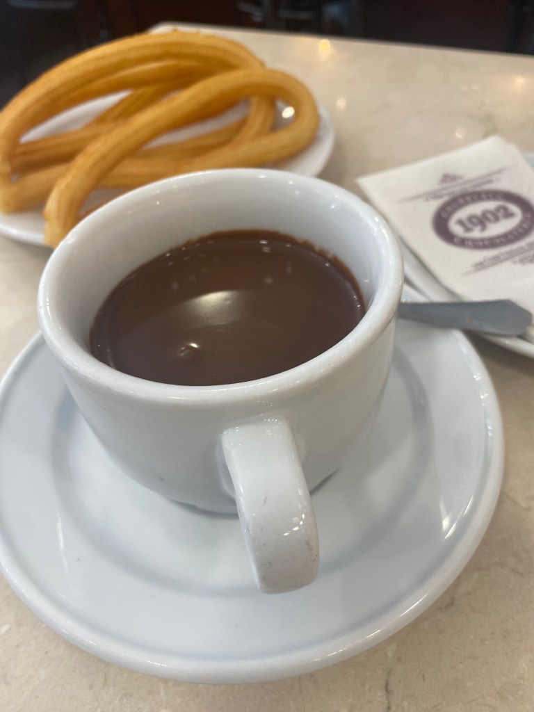 I also went to la Chocolatería de Sán Ginés with them, and I liked the churros and chocolate. I ended up going there once more during my vacation to meet up with my apartment mates (after I left El Parque de San Isidro). And I also went to a couple of other churrerías during my trip: Chocolatería 1902 and Churrería – Chocolatería Las Farolas. I ended up going to the former more than the latter due to better service. I tried their churros one day and their porras another day. Chile, you don’t really know churros until you eat them in Spain.