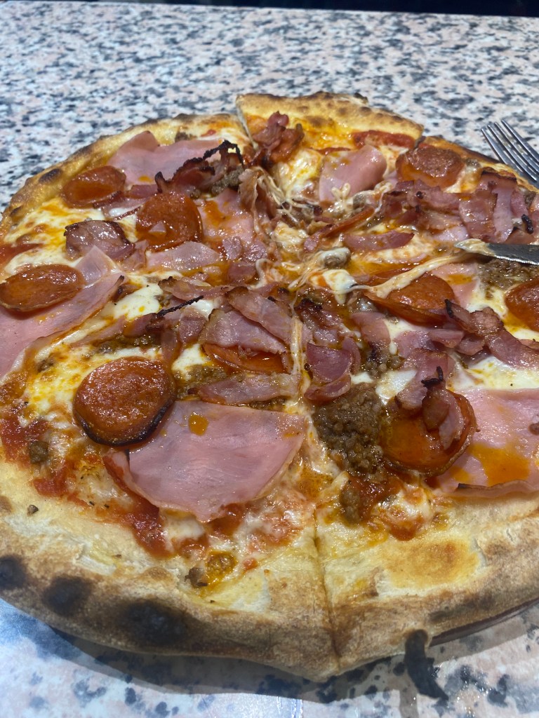 I know somebody reading this article is gonna want pizza in Madrid. And worry not, because Pizza Vesuvio is there to soothe that hunger pang. It’s on la Calle de Hortaleza, adjacent to la Gran Vía, and their pizza was *chef’s kiss*. BEWARE: the photo below will make your mouth water.