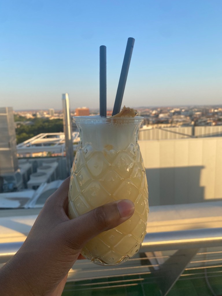 Tickets to the rooftop are only 5 euros a piece, not including the drinks. I’d say the best time to go is around sunset, which happens past 9PM in July and most of August. On July 31st, there was still light even after 9:30 PM. I’ll caption the shared photos with the time they were taken for reference. Note that the times are in CEST, Madrid’s time zone in the summer.