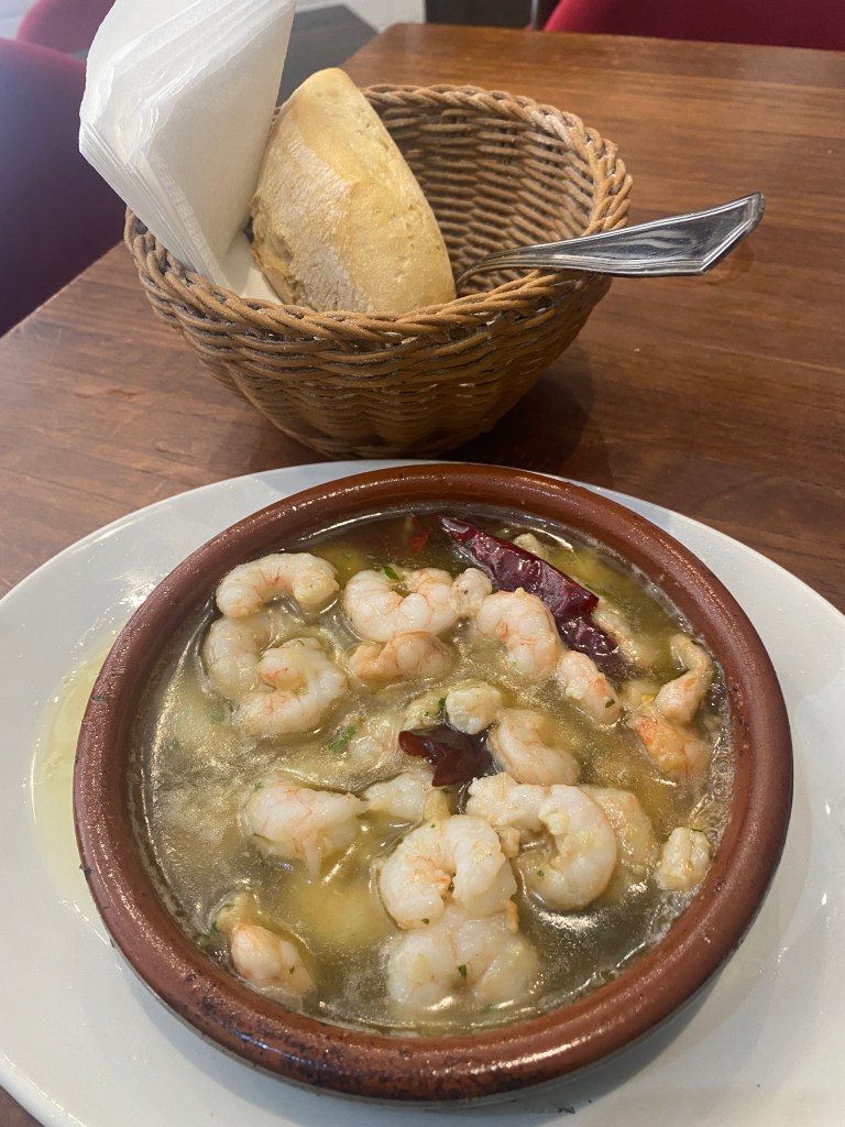 From that video, I learned that Casa Toni cooks delicious sweet breads (as in meats, not literal sweet breads), La Mallorquina bakes tasty napolitanas de crema, and that La Casa del Abuelo boils up savory gambas al ajillo. Those delicacies looked so tasty in the videos, and when I finally ate the food in person, none of it disappointed. Casa Toni served not only tasty sweetbreads (mollejas a la plancha on their menu), but also tasty patatas bravas. I absolutely LOVED the napolitanas de crema from La Mallorquina. And the gambas al ajillo at La Casa del Abuelo was *chef’s kiss*. Just look at all that food.