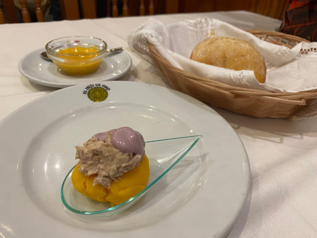 I also ate at a Peruvian Restaurant called Inti de Oro Barrio de las Letras, which is on la Calle de Ventura de la Vega. Unfortunately, my phone died before I could get a picture of the lomo saltado. I had been out all day at that point. First to el Museo de América, then to el Faro de Moncloa, then to el Parque del Buen Retiro, and then past sunset, that restaurant. But I still have the image of the lomo saltado in my mind. God, it was tasty, and so was the appetizer, which I do have a photo of. It shows una causa de atún con pan (potato and tuna casserole with bread), and d**n, I had no clue that potatoes and tuna paired well together.